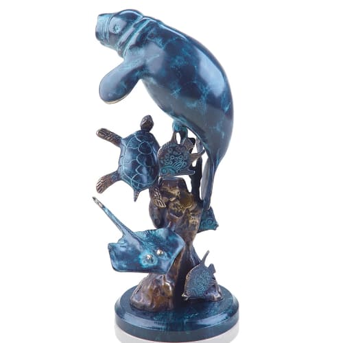 This charming piece showcases a group of manatees in lifelike poses, crafted with exquisite patina finishes that bring warmth and character to any space.